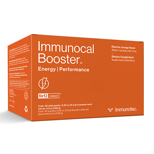 Immunocal Booster Enegy Performance es una mezcla en polvo basada en extracto de semillas de brócoli con frutos rojos y vegetales orgánicos, enriquecidos con vitaminas y minerales, sabor cítrico.